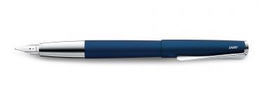 Füllhalter aus rostfreiem Edelstahl, in matt-dunkelblauem Soft-Lack-Finish, mit Patronenfüllsystem