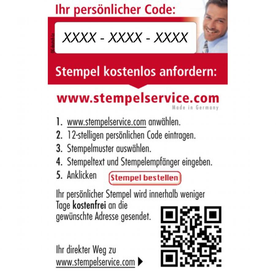 Mit der Lieferung des Kugelschreibers erhalten Sie Ihren persönlichen Gutschein, mit dem Sie Ihre Stempelplatte dann selbst bestellen.